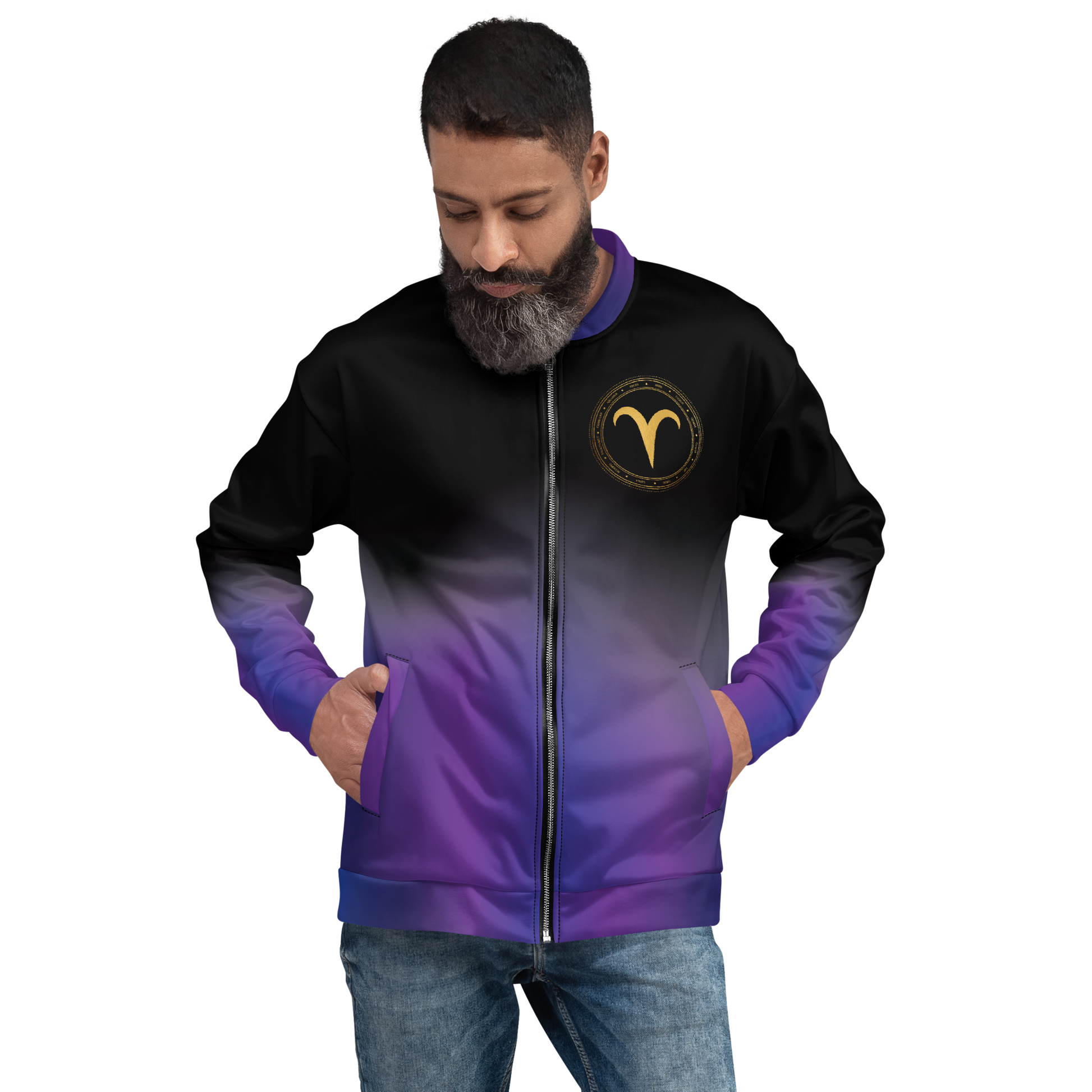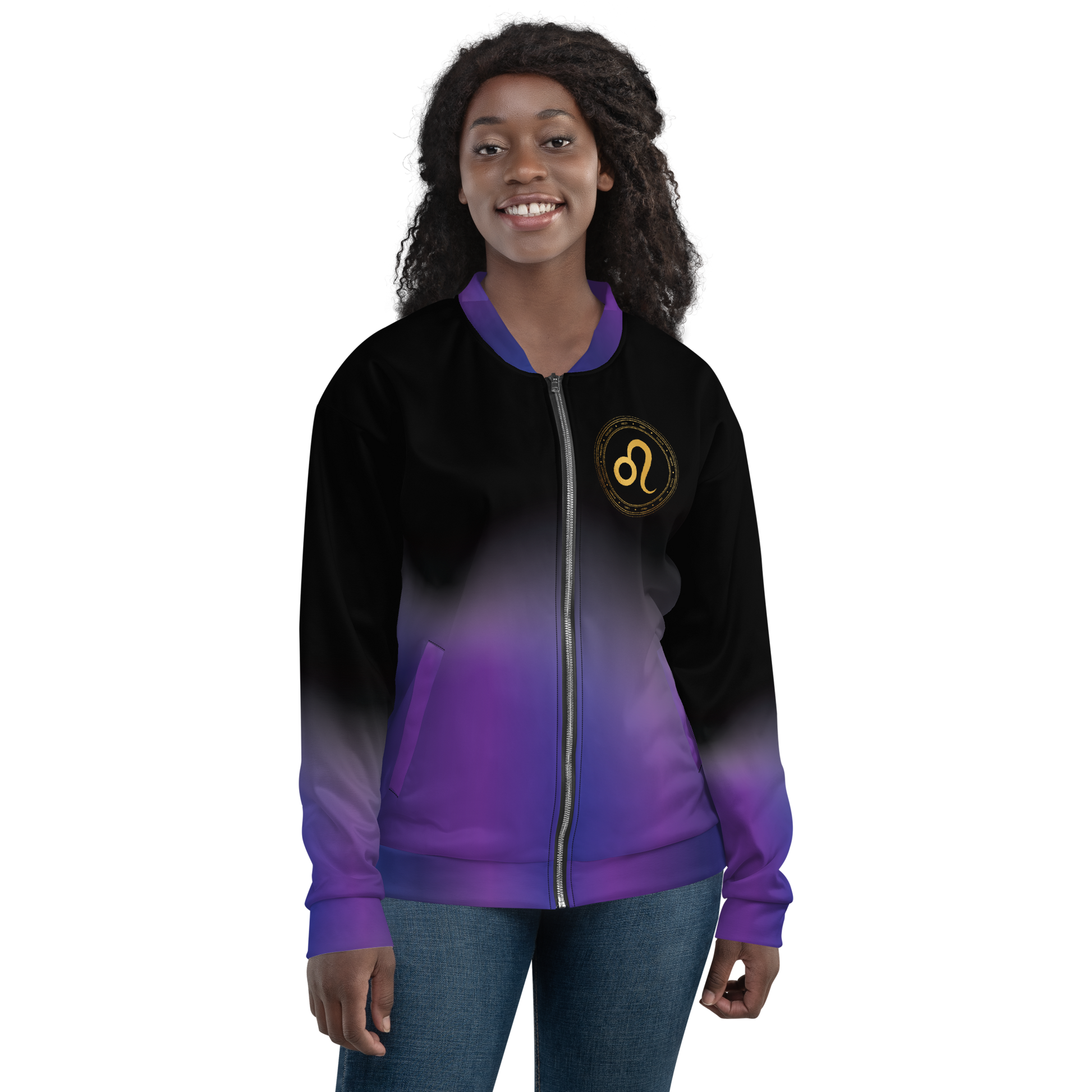 Light up your wardrobe with this midnight astrology themed lightweight Bomber Jacket. Wear it on a basic t-shirt, or layer it on top of a warm hoodie—it’ll look great either way.