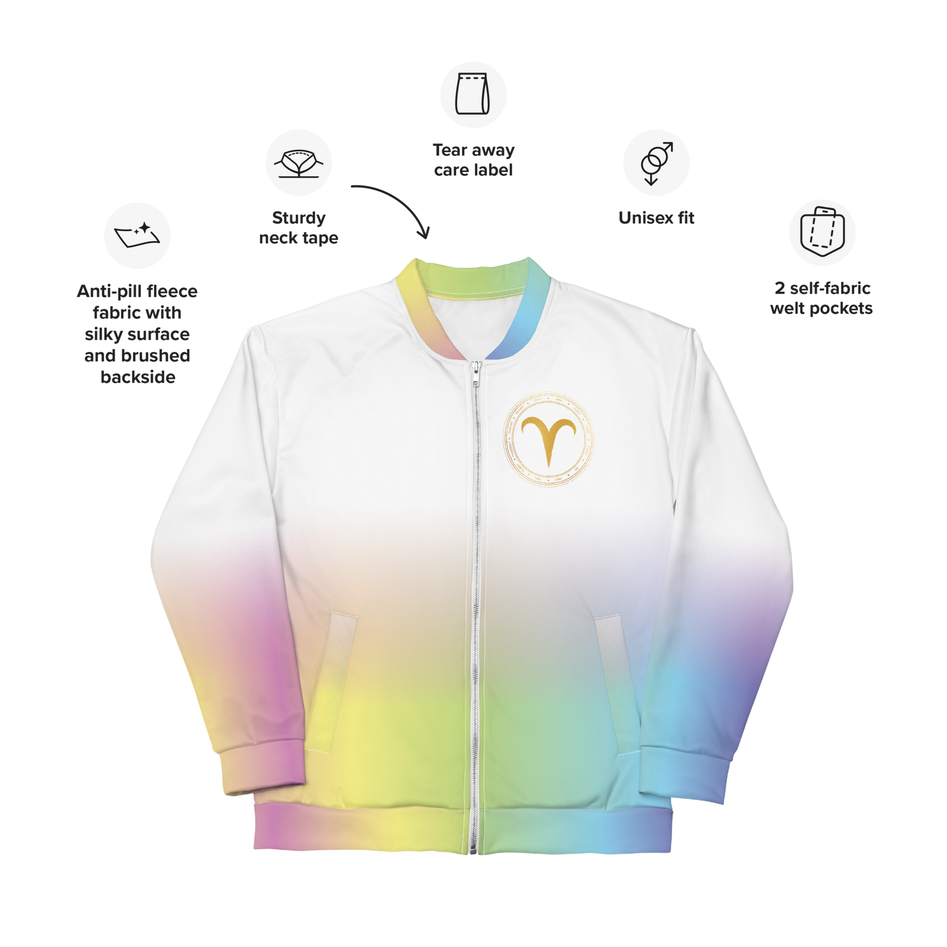 Light up your wardrobe with this prideful astrology themed lightweight Bomber Jacket. Wear it on a basic t-shirt, or layer it on top of a warm hoodie—it’ll look great either way.